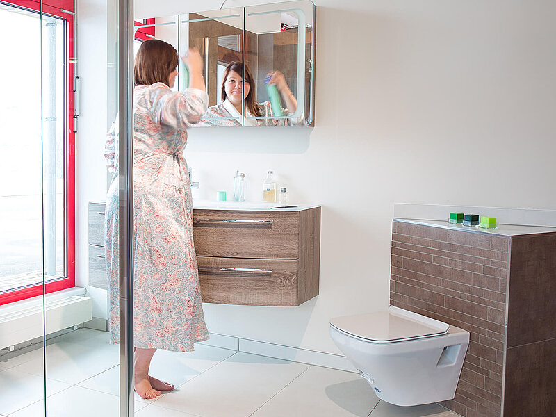 Das Bad ist heute auch ein Ort der Gesundheit und des Wohlfühlens. Moderne Bäder schaffen eine Wellness-Atmosphäre der Entspannung und Regeneration. Lassen Sie sich in unserer Bäderausstellung und von unseren Ideen und unserem Sortiment inspirieren – und bringen Sie mehr Lebensqualität in Ihren Alltag. Die Größe Ihres Bades spielt für die Integration verschiedener Wellness-Elemente wie Infrarot- oder Kneipp-Therapie keine Rolle. Wir bieten Ihnen Wohlfühlen in allen Dimensionen.